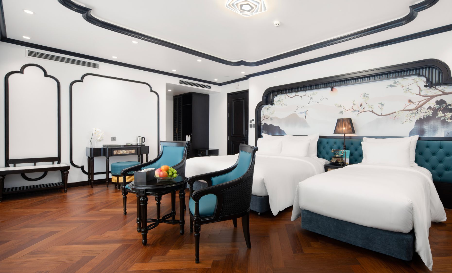 Nội thất trong phòng và các khu vực tiện ích của du thuyền được thiết kế đồng nhất theo phong cách Indochine, là sự giao thoa hoàn hảo của tinh hoa kiến trúc Đông – Tây kết hợp cùng phòng cách Á Đông đầy nghệ thuật.